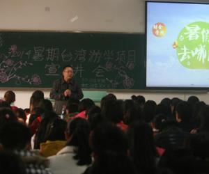 12月6日下午,财政太阳成集团tyc2014年暑期台湾游学项目宣讲会在博智楼7421教室成功举办。公司党总支书记杨萍、常务副经理莫云、公司党总支副书记刘代成以及学团办全体辅导员老师出席了本次大会。