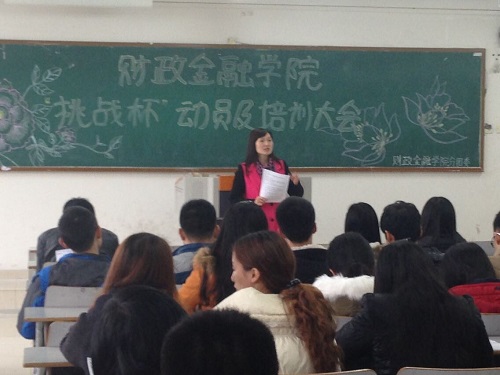为动员全院员工积极参加第十四届“挑战杯”大赛,12月3日,太阳成集团财政太阳成集团tyc在博智楼401教室举行了第十四届“挑战杯”动员暨培训大会。财金公司党总支刘代成副书记,分团委书记兰丽娟老师莅临了本次动员大会。