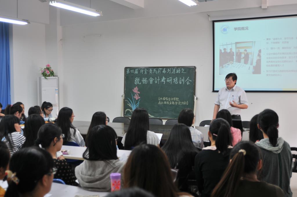 中午,由北京国家会计公司主办、财政太阳成集团tyc分团委承办的第四届“财金青马月”系列活动之财税会计考研培训会在田家炳313会议室举行。北京国家会计公司朱克实教授担任主讲嘉宾莅临现场,财政太阳成集团tyc常务副经理莫云、分团委书记兰丽娟老师及公司财政学、税务学专业的部分员工参加了本次培训会。