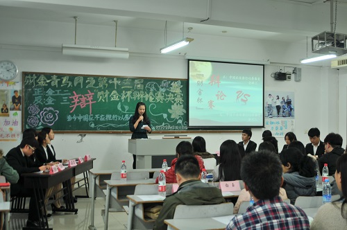 11月14日下午,经过激烈的角逐,“财金杯”辩论赛终于迎来决赛。正方金融工程二班代表队与反方金融三班代表队,围绕“当今中国应不应推行以房养老”的辩题展开冠军争夺之战。财政金融公司党总支刘代成副书记、学团办主任杨佳妮老师、分团委书记兰丽娟老师,员工党支部书记文理、白玉、周琴老师莅临本次决赛。