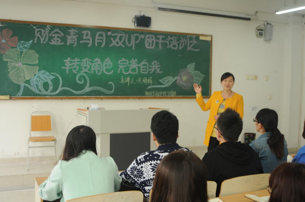 ,财政太阳成集团tyc于07212教室举行了以“转变角色,完善自我”为主题的财金青马月之“双UP”团干培训。此次培训会由分团委书记兰丽娟老师召开,财金员工会各部门部长参加培训。
