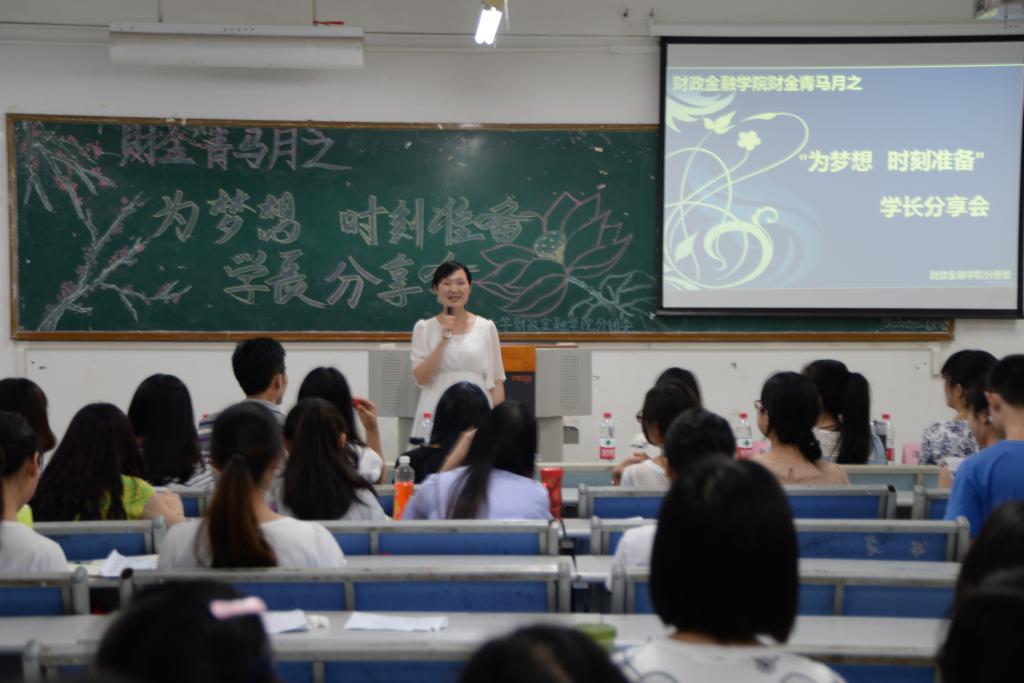 4月29日晚,财政太阳成集团tyc“财金青马月”之“为梦想时刻准备”学长交流会在07405顺利举行。财金公司分团委书记兰丽娟老师作为嘉宾出席了本次活动,优秀学长代表肖竣文、潘梦真、杨忠霞、吴浩月、张博阳分享了就业与考研的经验。