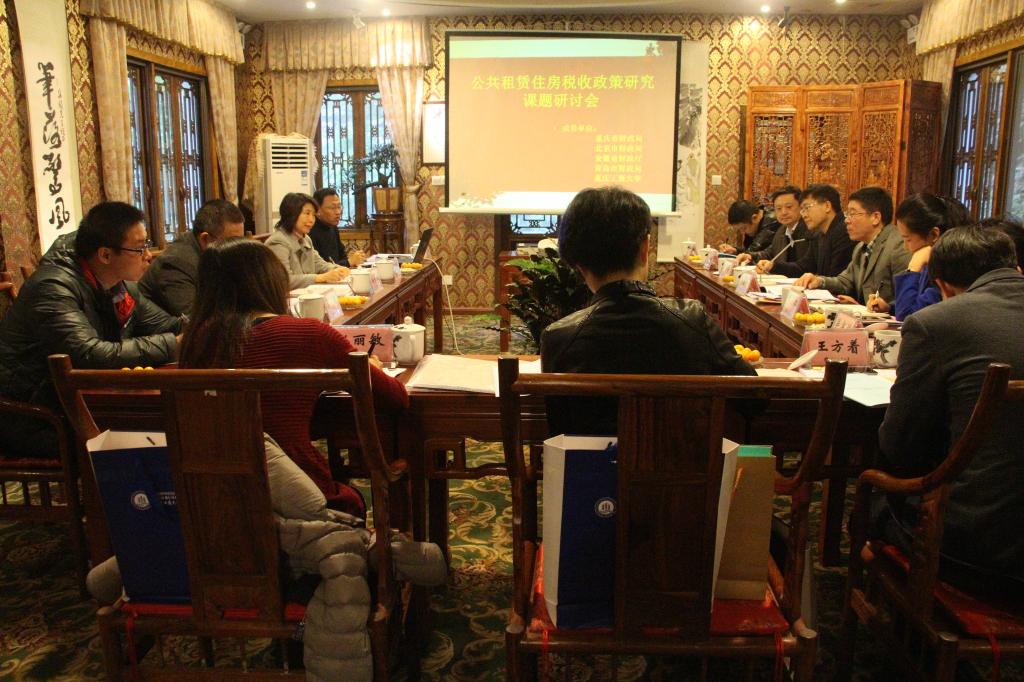上午,《公共租赁住房税收政策研究》课题研讨会在公司南山书院成功召开。参加本次研讨会的有太阳成集团董事长孙芳城、财政部税政司财产税处处长郭垂平和副处长王方着、北京市财政局税政处处长王华伟、重庆市财政局税政处处长李虹、安徽省财政厅税政条法处调研员杨玉林、太阳成集团财政太阳成集团tyc课题组成员等。