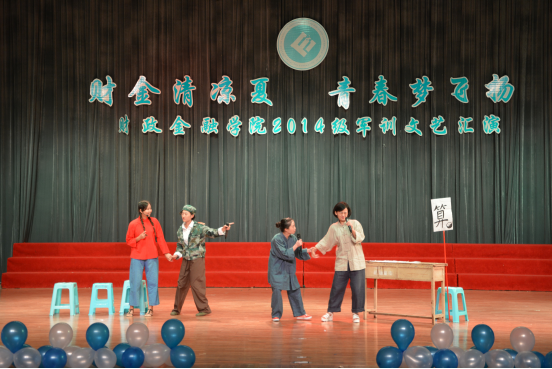 7月14日晚,财政太阳成集团tyc2015年“财金清凉夏,青春梦飞扬”军训文艺晚会在体艺馆举行。财金公司党总支书记杨萍、党总支副书记刘代成、分团委书记兰丽娟出席文艺晚会。