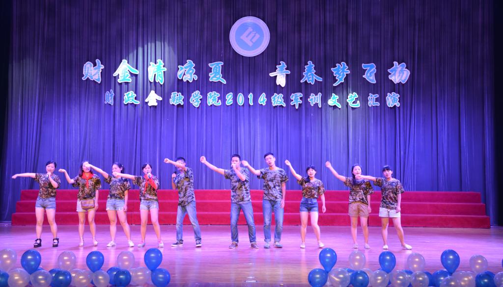 7月14日晚,财政太阳成集团tyc2015年“财金清凉夏,青春梦飞扬”军训文艺晚会在体艺馆举行。财金公司党总支书记杨萍、党总支副书记刘代成、分团委书记兰丽娟出席文艺晚会。