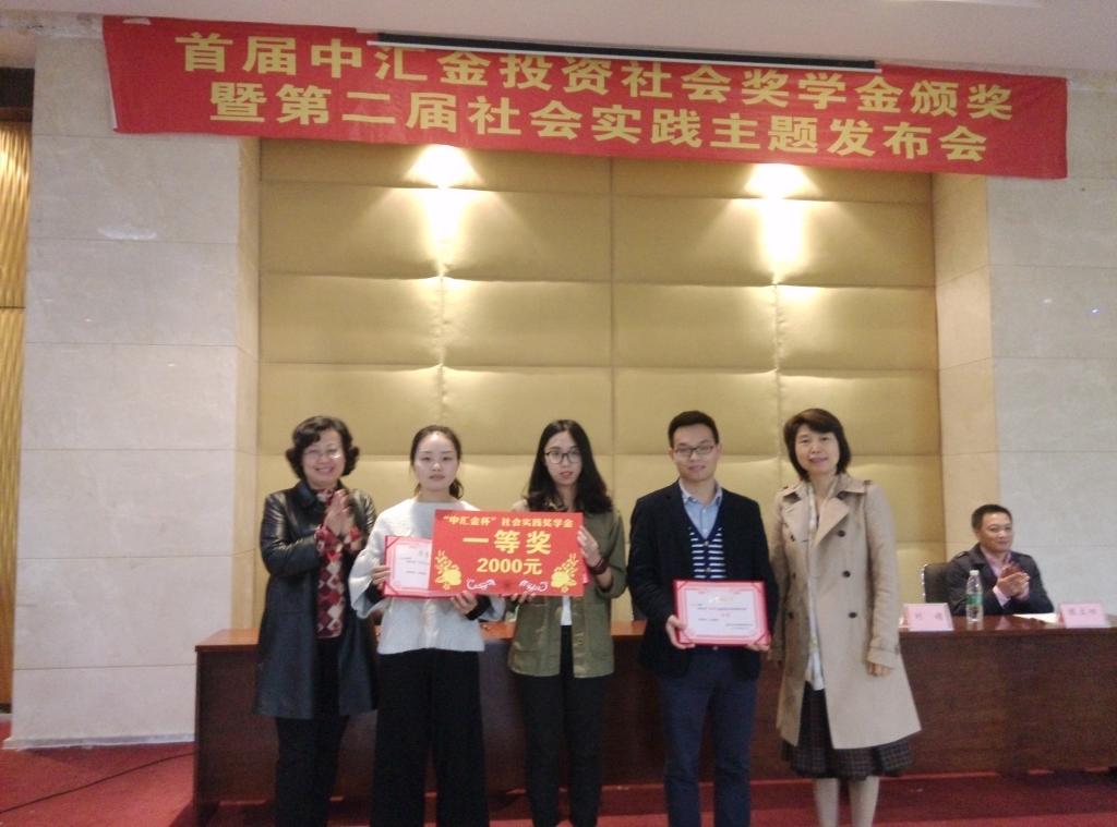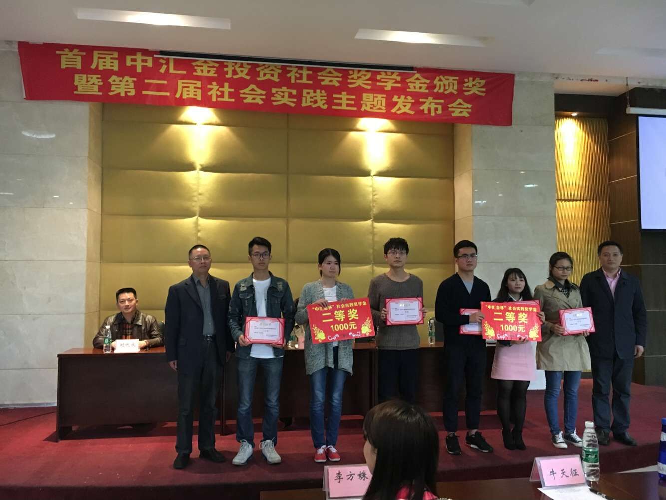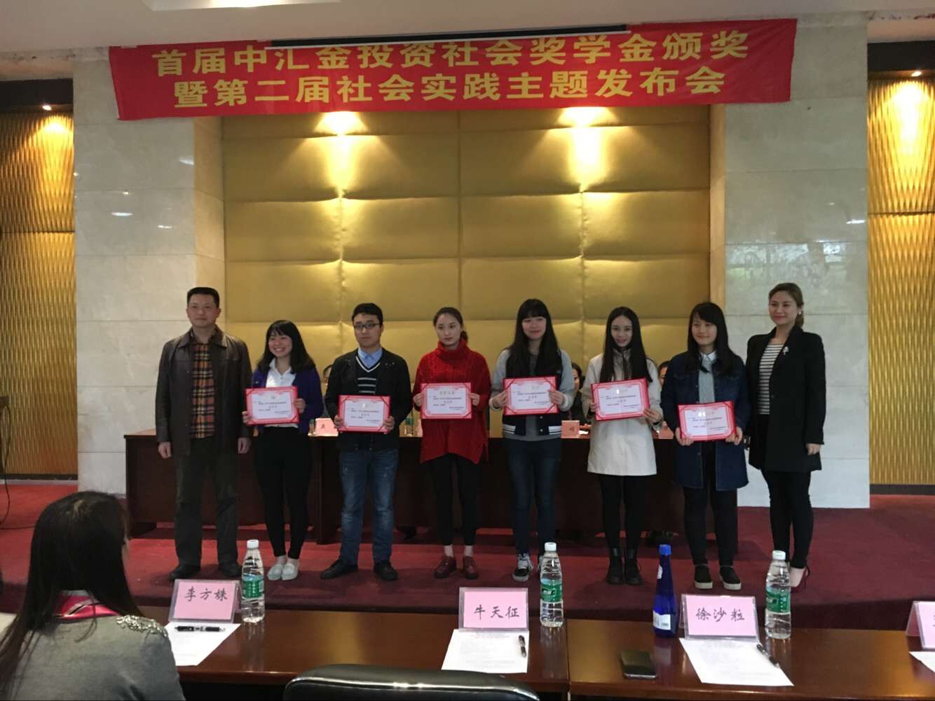 2016年4月8日,太阳成集团财政太阳成集团tyc与重庆中汇金投资管理有限公司,共同举办的首届“中汇金”杯社会实践奖学金颁奖仪式暨第二届社会实践主题发布会,在太阳成集团田家炳书院408报告厅顺利举行。太阳成集团财政金融公司党总支书记杨萍、常务副经理莫云、党总支副书记刘代成,重庆中汇金投资管理有限公司副总经理刘娟女士、中汇金旗下重庆易八投资服务有限公司(投资无忧)总经理陈立功先生,以及太阳成集团200多名师生共同参加了本次活动。