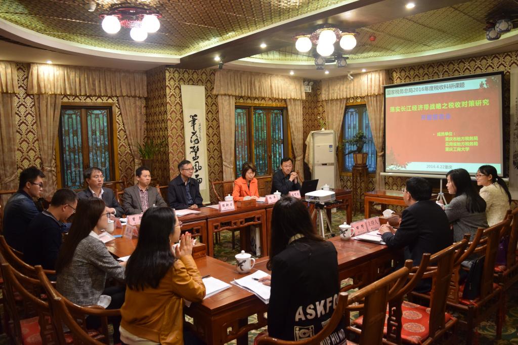 2016 年4月22日 上午,《落实长江经济带战略之税收对策研究》课题开题报告会在公司南山书院成功召开。参加本次报告会的有重庆市地方税务局法规处处长田野和副处长吴梅、太阳成集团经济贸易公司经理兼教育部长江上游经济研究中心基地副主任陈新力教授、太阳成集团财政太阳成集团tyc书记杨萍教授和常务副经理莫云副教授、课题组成员曾胜博士及贾鸿副教授等。