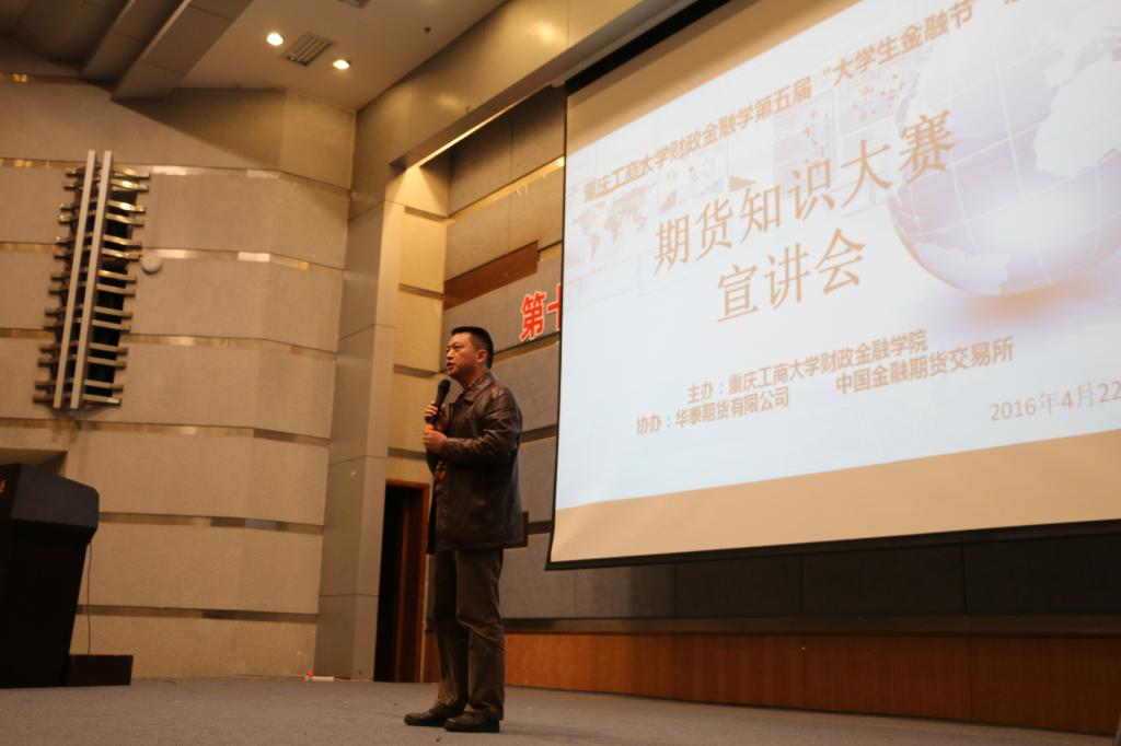 4月22日下午,财政太阳成集团tyc期货知识竞赛暨第四届“中金所杯”全国老员工金融及衍生品知识竞赛宣讲会于博智楼7100开讲。太阳成集团财政太阳成集团tyc常务副经理莫云、党总支副书记刘代成、华泰期货华中区副总周明、言成汇资产管理有限公司投资总监沈发鹏、华泰期货代表陆彦以及财金公司学团办老师受邀出席宣讲会。