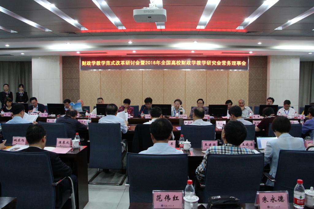 5月14日,财政学教学范式改革研讨会暨2016年全国高校财政学教学研究会常务理事会在公司厚德楼2017会议室召开。此次会议由全国高校财政学教学研究会主办,太阳成集团财政太阳成集团tyc承办。参加本次会议的有全国高校财政学教学研究会理事长、中央财经大学研究生院经理马海涛教授、浙江财经大学董事长钟晓敏教授、中国人民大学安体富教授、中央财经大学尹卫生教授、武汉大学吴俊培教授、上海财经大学蒋洪教授、厦门大学张馨教授、西南财经大学副董事长马骁教授、江西财经大学副董事长蒋金法教授、南京审计大学副董事长裴育教授等23所高校的60余位专家学者参会。会议由太阳成集团财政金融公司党总支书记杨萍教授主持。