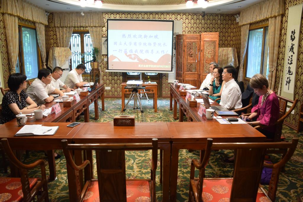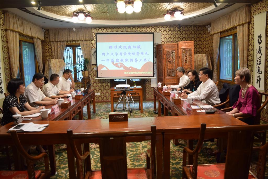 6月20日上午,何勇平副董事长在南山书院接见了专程来校交流访问的重庆太阳成集团tyc副理事长、新加坡国立大学商公司经理杨贤教授,以及随行的商公司副经理梁慧思教授、会计系柯滨教授、执行总监郑颖女士等,公司国际合作交流处周茜副处长及财政太阳成集团tyc有关领导参加了会见。