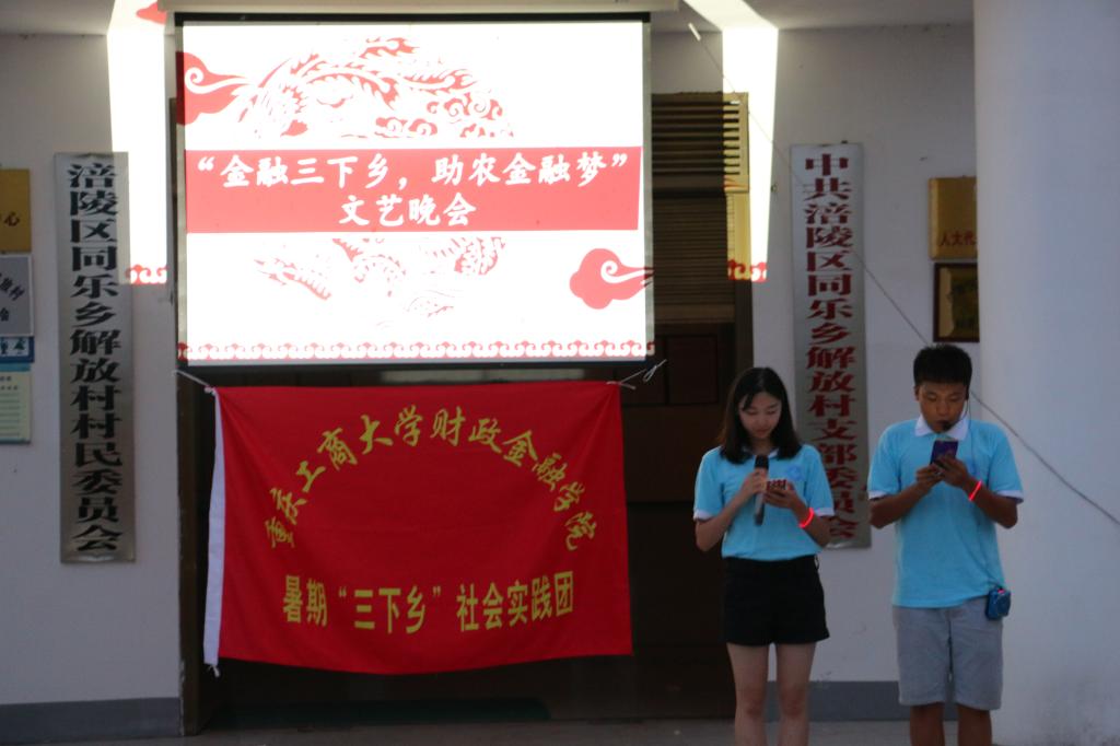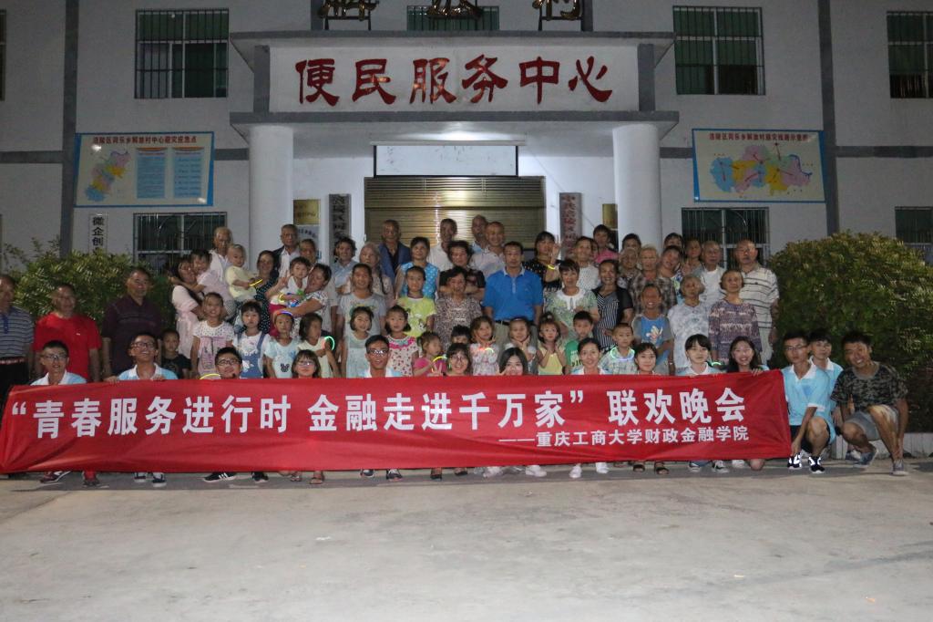 7月20日晚,太阳成集团财政太阳成集团tyc金融电商服务实践团在同乐乡解放村便民服务中心举行了以“金融三下乡,助农金融梦”为主题的联欢晚会。实践团和父老乡亲们一起参与到晚会中,将现场气氛推到了高潮。节目内容丰富多样、形式新颖,同学们青春洋溢,质朴热情的村民也乐在其中。