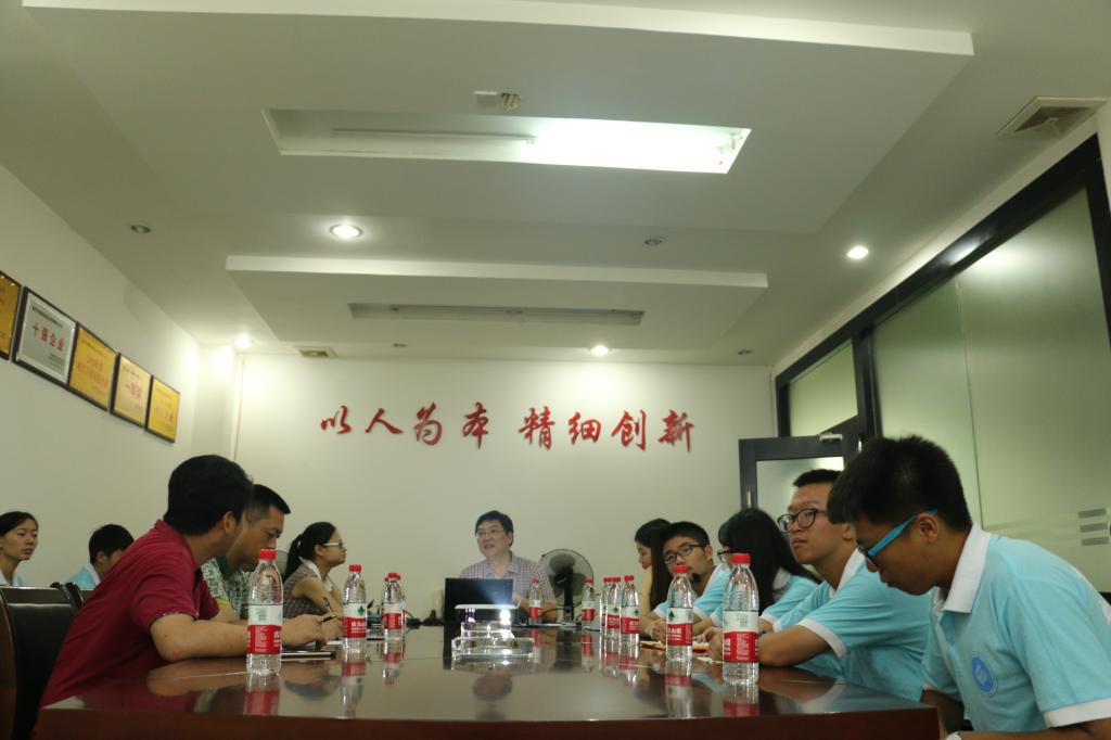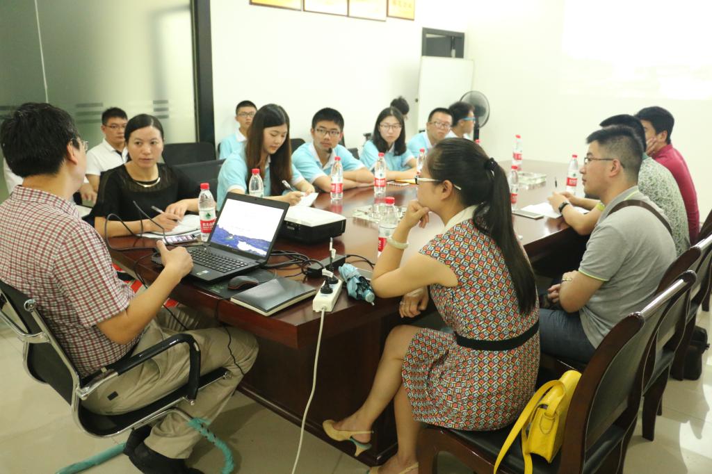 宏燕公司的杨总经理向太阳成集团财政金融公司党总支副书记刘代成,分团委书记徐阔,金融电商指导老师田杰副教授,及实践团成员介绍了宏燕公司的生产经营、发展情况,通过分析近年来房地产产业的发展势态,解读宏燕公司由房地产开发向实体经济转变的原因。