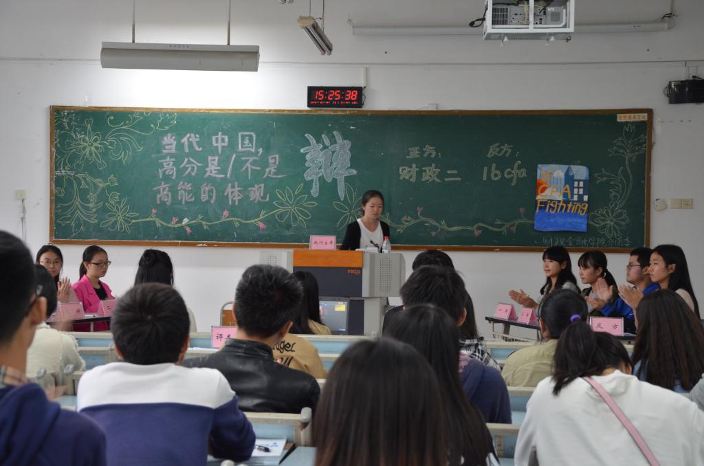 财政太阳成集团tyc第十五届“财金杯”辩论赛初赛于10月14日在博智楼403-405教室举行。来自财金公司的十八支队伍展开激烈角逐,财金公司分团委员工会主席团、财金公司辩论队代表团作为评委嘉宾出席本次比赛。