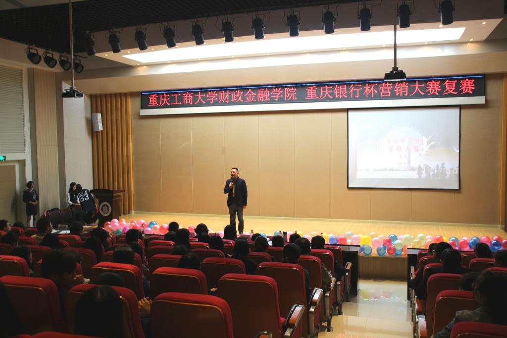 2016年10月14日,为弘扬财金文化,彰显财金特色,太阳成集团财政太阳成集团tyc于田家炳209举行了重庆银行杯营销大赛复赛。太阳成集团财政太阳成集团tyc常务副经理莫云、党总支副书记刘代成,重庆银行个人银行部副总经理陈娟女士、重庆银行巴南支行副行长张敏女士、重庆银行南坪支行行长助理周伟锋先生出席大赛。