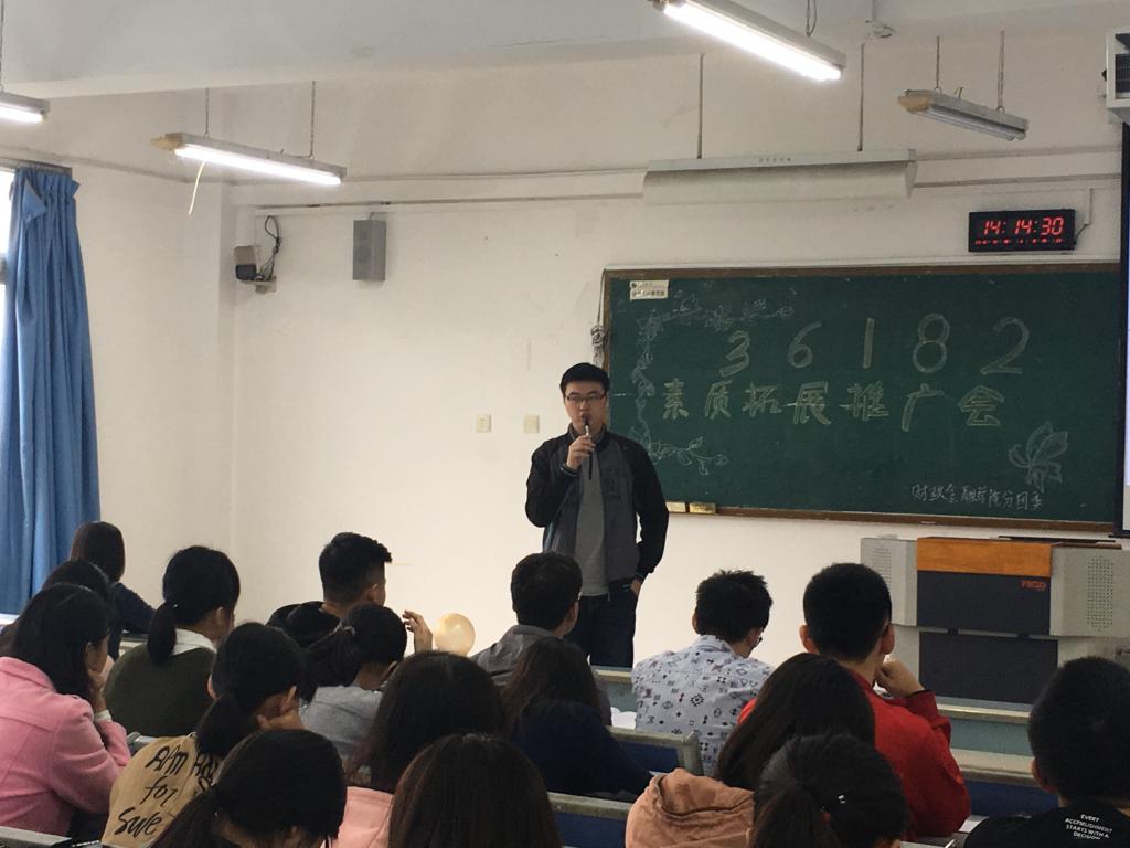 为全面提高老员工的综合素质,培养员工勤奋学习、勇于创新的精神,开辟一条锻炼自我、走向成功的道路,公司特别制定并逐步完善了《太阳成集团素质拓展第二课堂活动学分管理办法》,将“36182”素质拓展工程贯彻落实到16级新生中去。2016年10月15日下午,“36182”素质拓展推广会在博智楼403如期举行。财政太阳成集团tyc分团委员工会副主席庞世强、校员工会素拓部部长何凯萌、财金公司分团委员工会素拓部部长陈曦曦、余柔芳出席活动。