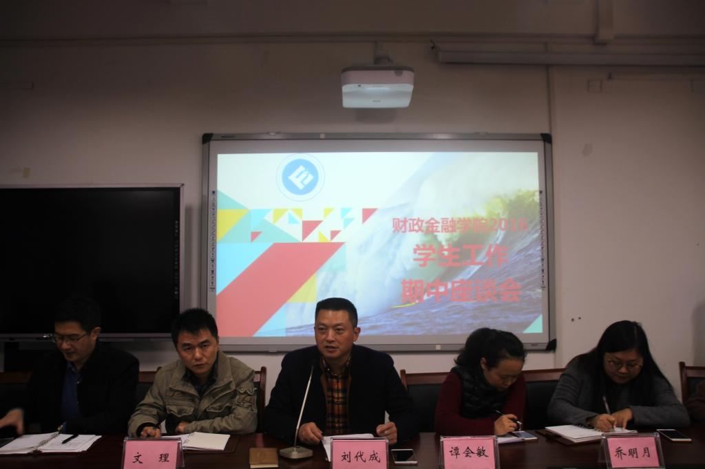 2016年11月22日中午,财政太阳成集团tyc于田家炳313会议室召开了2016年员工工作期中座谈会,财金公司总党支副书记刘代成、学团办老师、各班代表参加座谈会。
