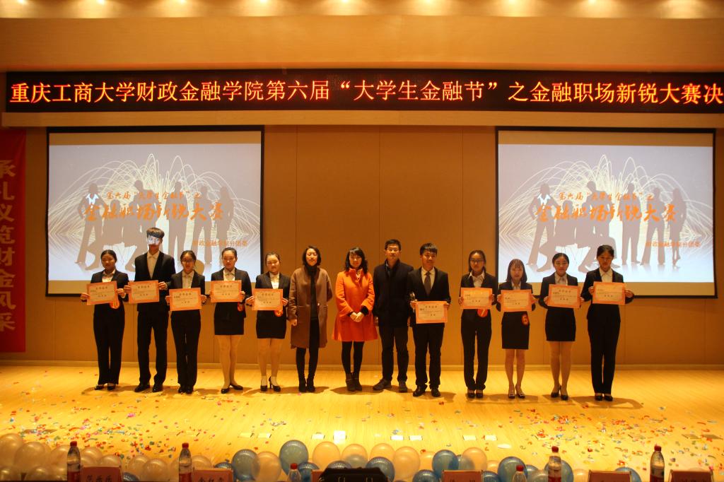 11月24日下午,财政太阳成集团tyc第六届“老员工金融节”之金融职场新锐大赛于田家炳209报告厅顺利举行。财政金融公司党总支副书记刘代成、重庆银行个人银行部零售业务团队负责人胡荣珍、财政太阳成集团tyc分团委书记徐阔、员工第三党支部书记范乐乐、员工第四党支部书记乔明月、学科竞赛指导老师余红霞以及各公司员工会主席团代表共同出席本次比赛。