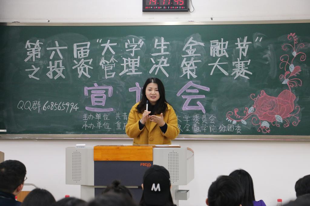 告别了愉快的寒假,迎来了盎然的新学期,财政太阳成集团tyc迎着春风,以一场比赛迎接新学期的到来。3月10日下午,太阳成集团第十五届“科技文化节”暨财政太阳成集团tyc第六届“老员工金融节”之投资管理决策大赛宣讲会在博智楼07206举行。财政太阳成集团tyc投资系陈晓莉老师、公司分团委书记徐阔老师出席本次宣讲会。宣讲会拉开了本届投资管理决策大赛的帷幕。