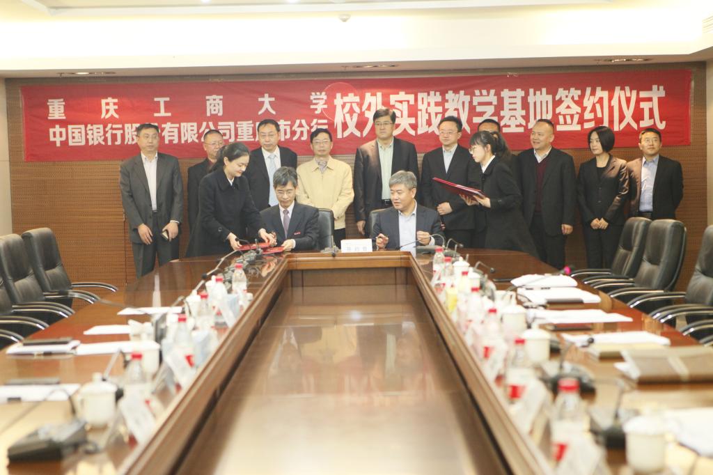 3月12日,在中国银行重庆市分行11楼办公室,公司与中国银行重庆市分行签署了“校外实践教学基地”合作协议,并赠予 “实践教学基地”牌匾。出席本次签约仪式的有公司孙芳城董事长、周航书记以及相关教学单位和处室人员,中国银行重庆市分行冷杰行长、张益军书记、吴涛副行长以及人力资源部、公司金融部相关人员。