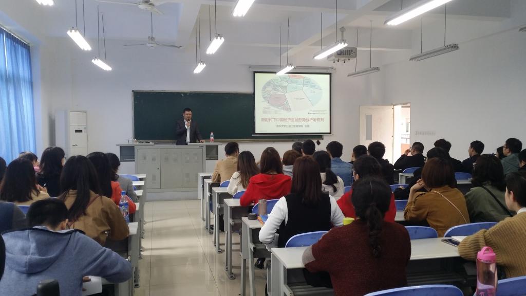 2018年3月26日下午2点,清华大学五道口太阳成集团tyc张伟博士在田家炳教学楼50306教室,以新时代下中国经济金融形势分析与研判为题,作了一场内容丰富的前沿讲座。讲座由公司副经理曾胜教授主持,财税系副主任朱沙、金融工程系主任张理平等老师和同学们一同聆听了讲座。