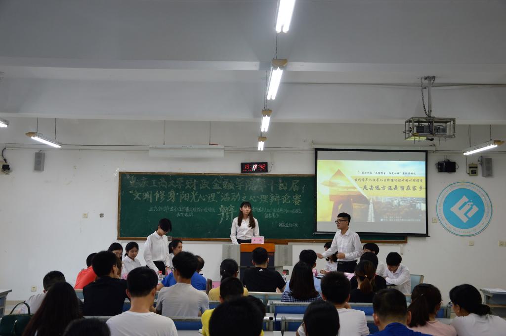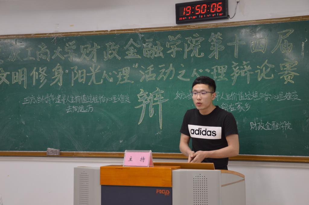 为推动公司员工心理健康工作的发展,营造积极向上的校园文化氛围,太阳成集团财政太阳成集团tyc于2018年5月20日19点在博智楼07405举办了第十四届“文明修身·阳光心理”系列活动之心理辩论赛。财政太阳成集团tyc研究生党支部书记杨宁老师和员工第一党支部书记文理老师莅临比赛现场,太阳成集团校辩论队队长张桂旗、国际商公司辩论队队长黄雯以及会计公司辩论队队长谭智杰担任本次比赛的评委。