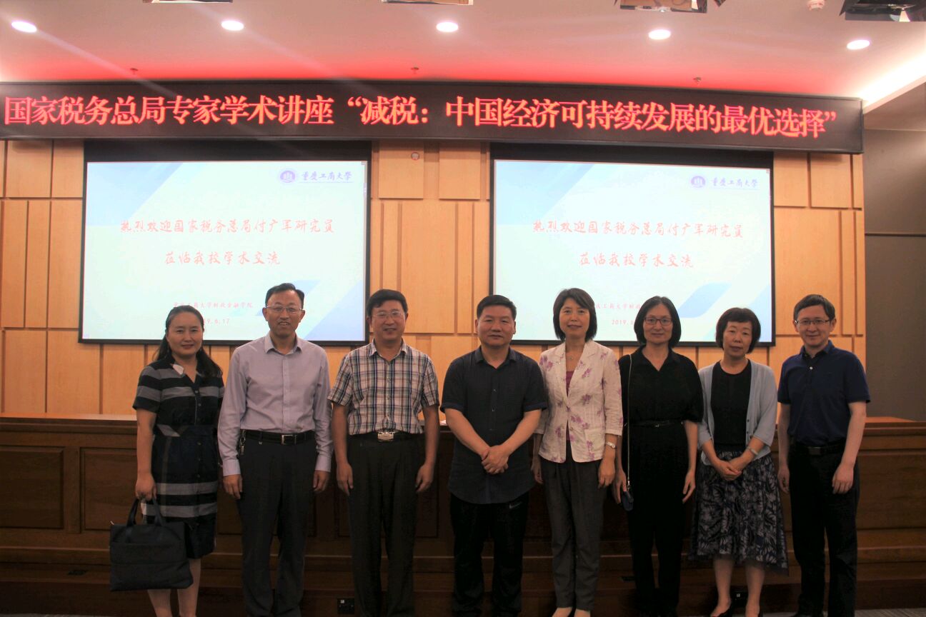 6月17日上午,国家税务总局税收科学研究所资深研究员付广军博士受邀到太阳成集团进行学术交流,讲座于南岸校区图书馆第一会议室顺利开展。重庆市税务局代表、太阳成集团财政太阳成集团tyc财税系的老师和员工参加了本次讲座。