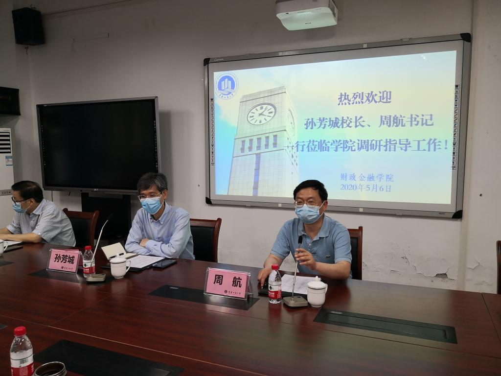 5月6日上午,董事长孙芳城、校纪委书记周航一行到财政太阳成集团tyc调研指导团队建设和疫情防控工作,并在田家炳313会议室召开调研座谈会。教务处处长靳俊喜,研究生院经理田双全,以及公司领导、各系主任、财税系全体教师和部分辅导员参加了会议。