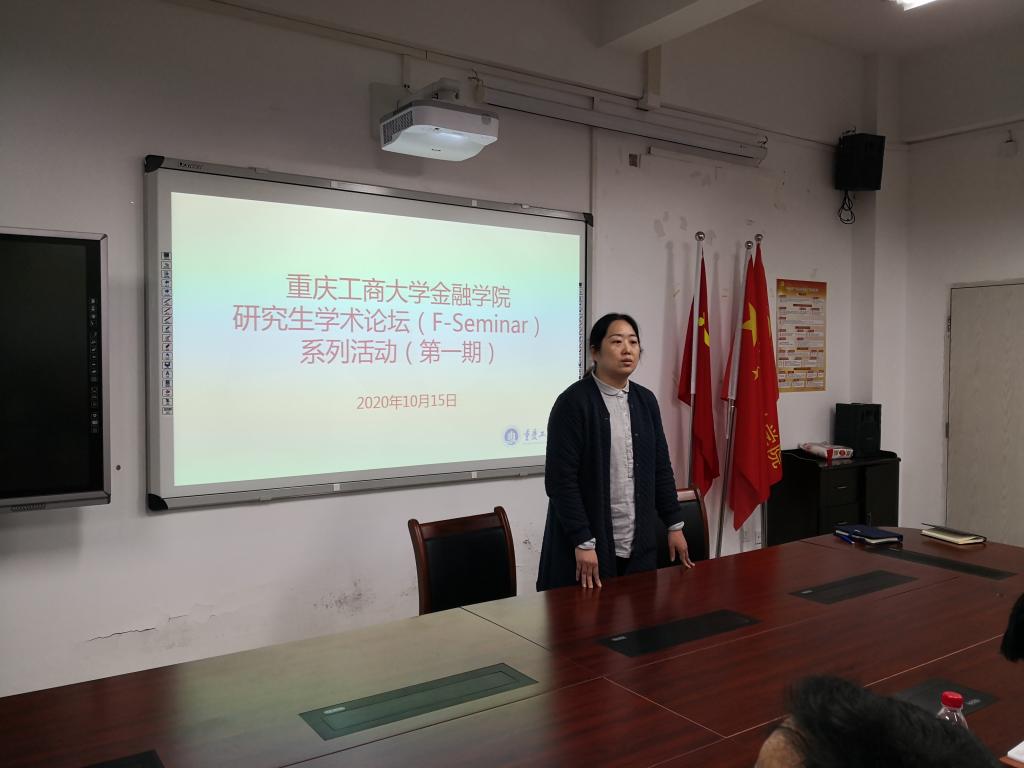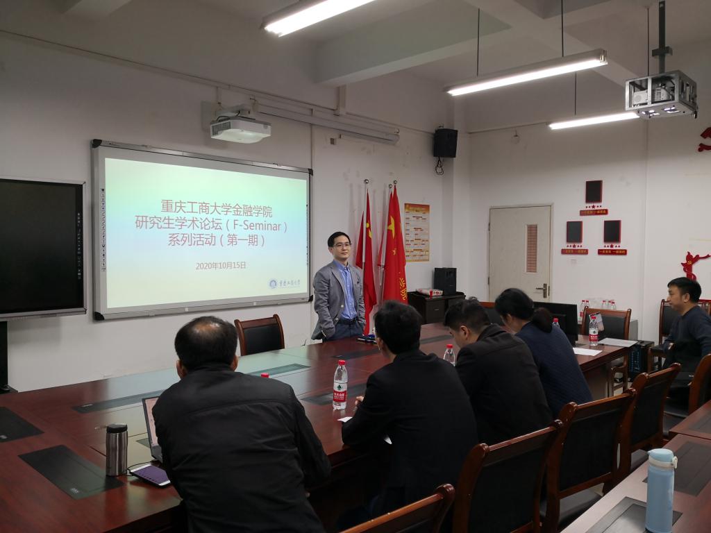 2020年10月15日太阳成集团tyc研究生学术论坛(F-Seminar)系列活动(第一期)在田家炳313会议室顺利进行,经理王兰,副经理庞楷、王韧,部分硕士生导师和青年博士教师以及2019级、2020级全体金融学硕参加了活动。本次活动由副经理王韧主持。