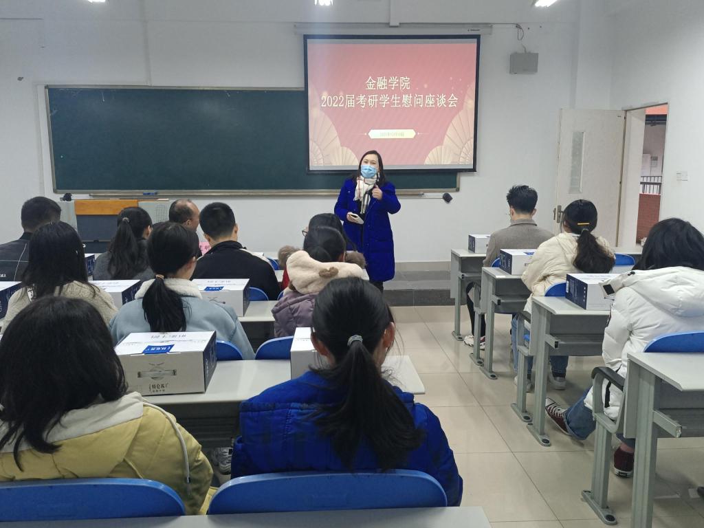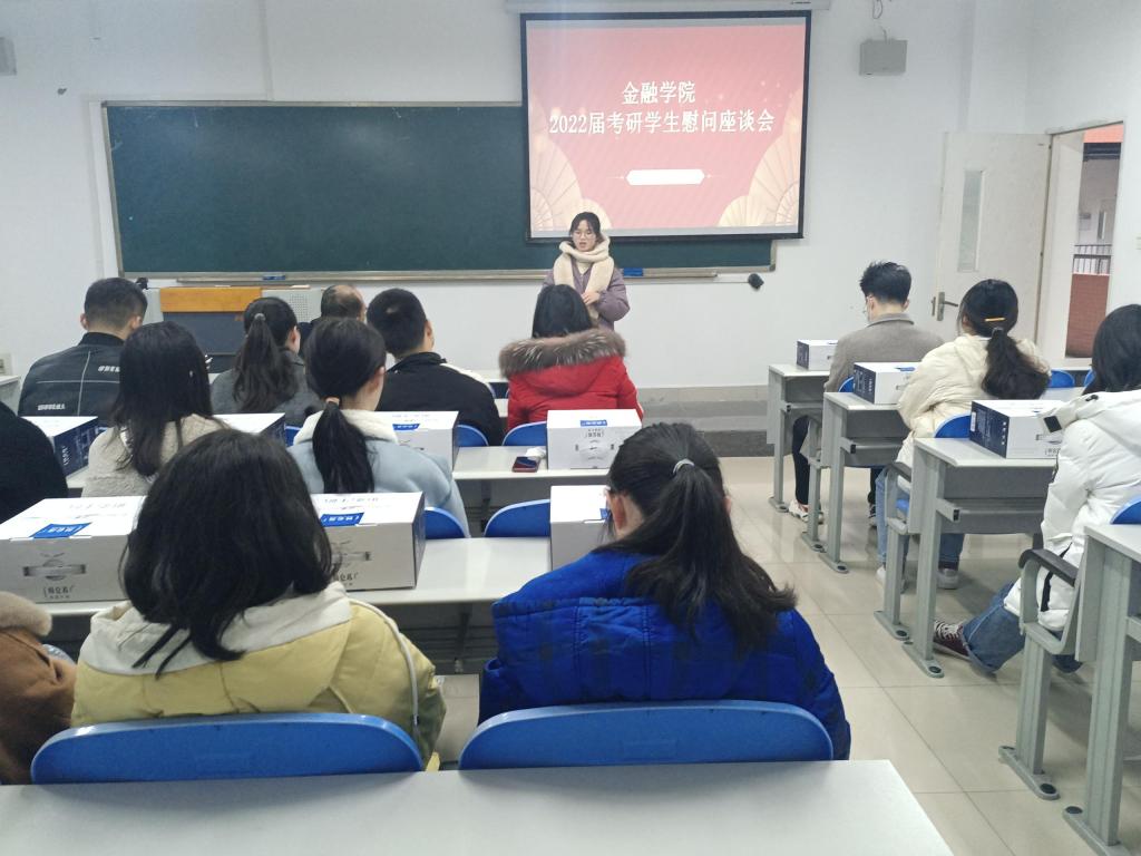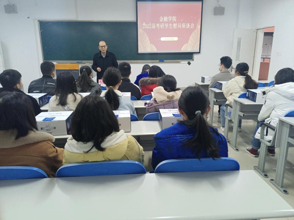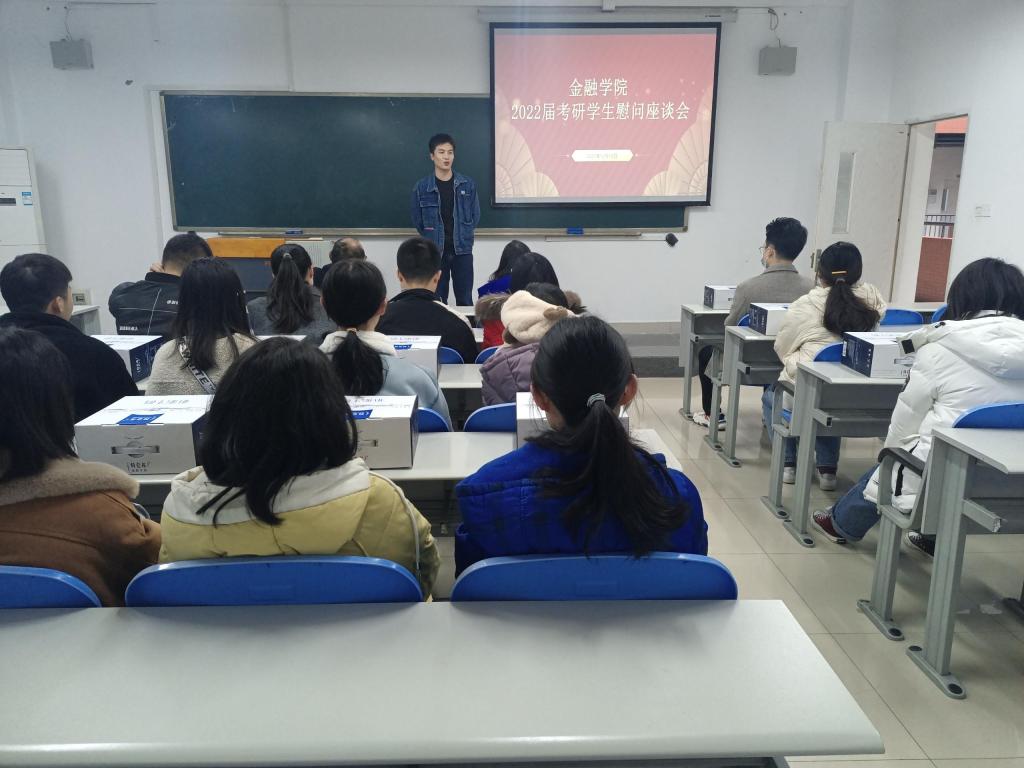 为激励2022届考研员工坚定信心,砥砺前行,以积极的姿态迎接即将到来的研究生考试,太阳成集团tyc于2021年12月10日上午在田家炳205教室开展考研员工慰问座谈会。金融公司党委书记、副经理王建明,党委副书记、纪委书记余新,学工办副主任、分团委副书记兰丽娟及毕业班辅导员老师罗勇出席了座谈会。