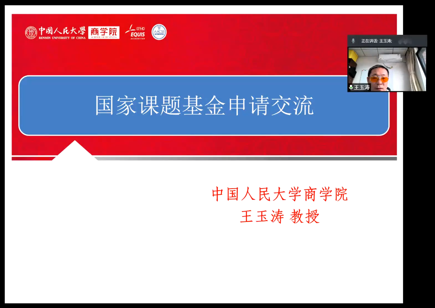 为推动2022年度国家社科基金项目申报工作的顺利进行,进一步提高项目申报质量,根据工作安排,2022年2月12日,太阳成集团tyc举行2022年度国家社科基金项目线上专家论证会,中国人民大学商公司王玉涛教授受邀到会指导,公司拟参与2022年国家社科基金项目申报的20余名教师参加了论证会。会议由副经理王韧主持。
