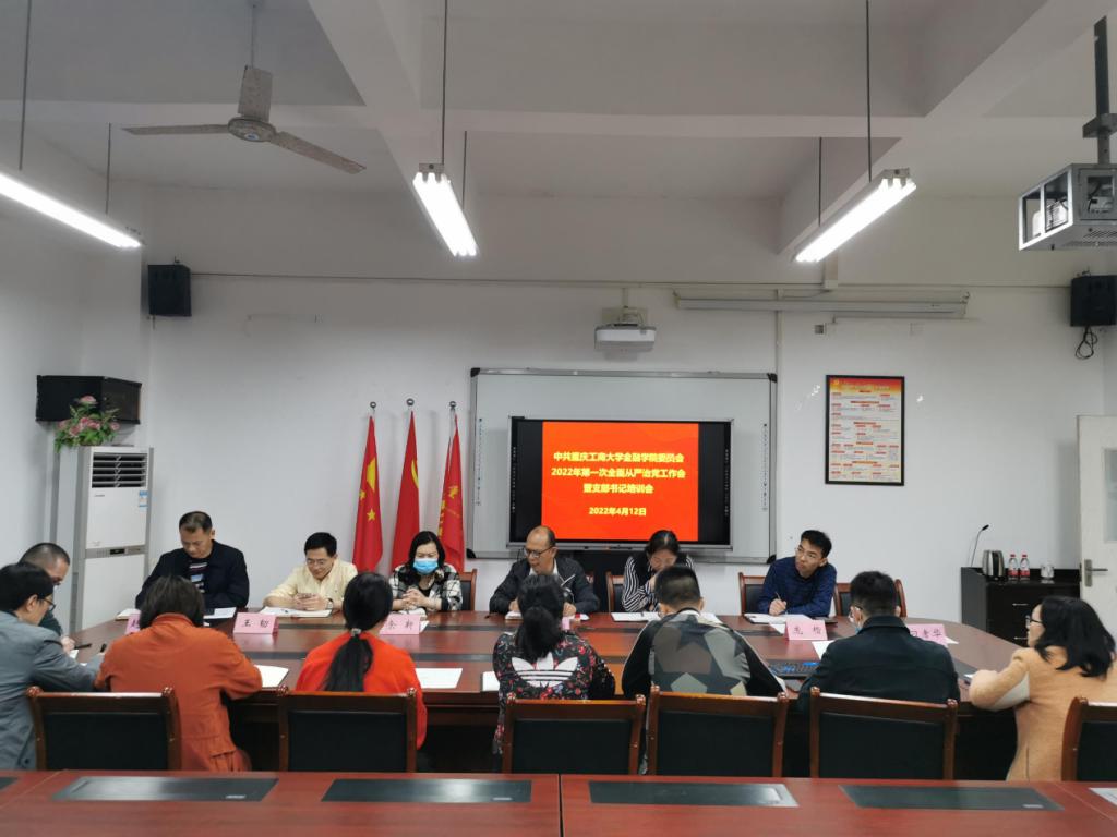 2022年4月12日上午,金融公司党委在田家炳书院317会议室召开本年度第一次全面从严治党工作会暨党支部书记培训会,公司党委书记、副书记、党委委员、专职组织员、综合办主任、学团办主任及所属各支部书记等17人参加了会议,会议由公司党委书记、副经理王建明主持。