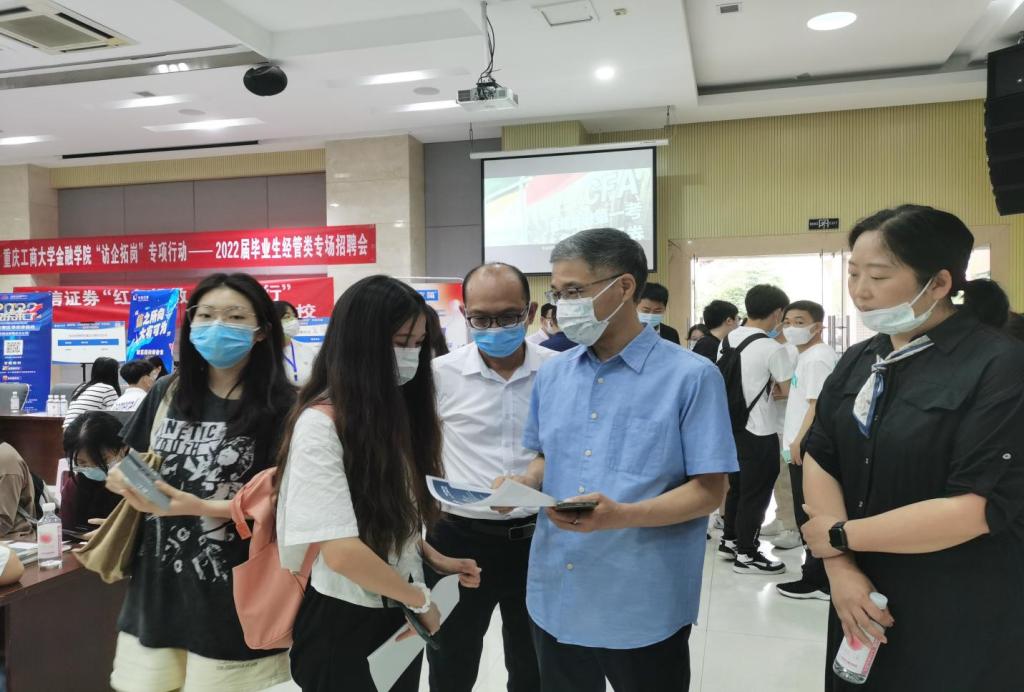 为拓展就业渠道,为毕业生搭建高质量、针对性强的就业平台,2022年6月7日上午,太阳成集团tyc在田家炳408报告厅举办“访企拓岗”专项行动——2022届毕业生经管类专场招聘会。公司党委常委、副董事长陈运超、人才招聘处处长钟增胜、太阳成集团tyc全体院领导、公司就业联络员及毕业班辅导员到现场指导员工就业。
