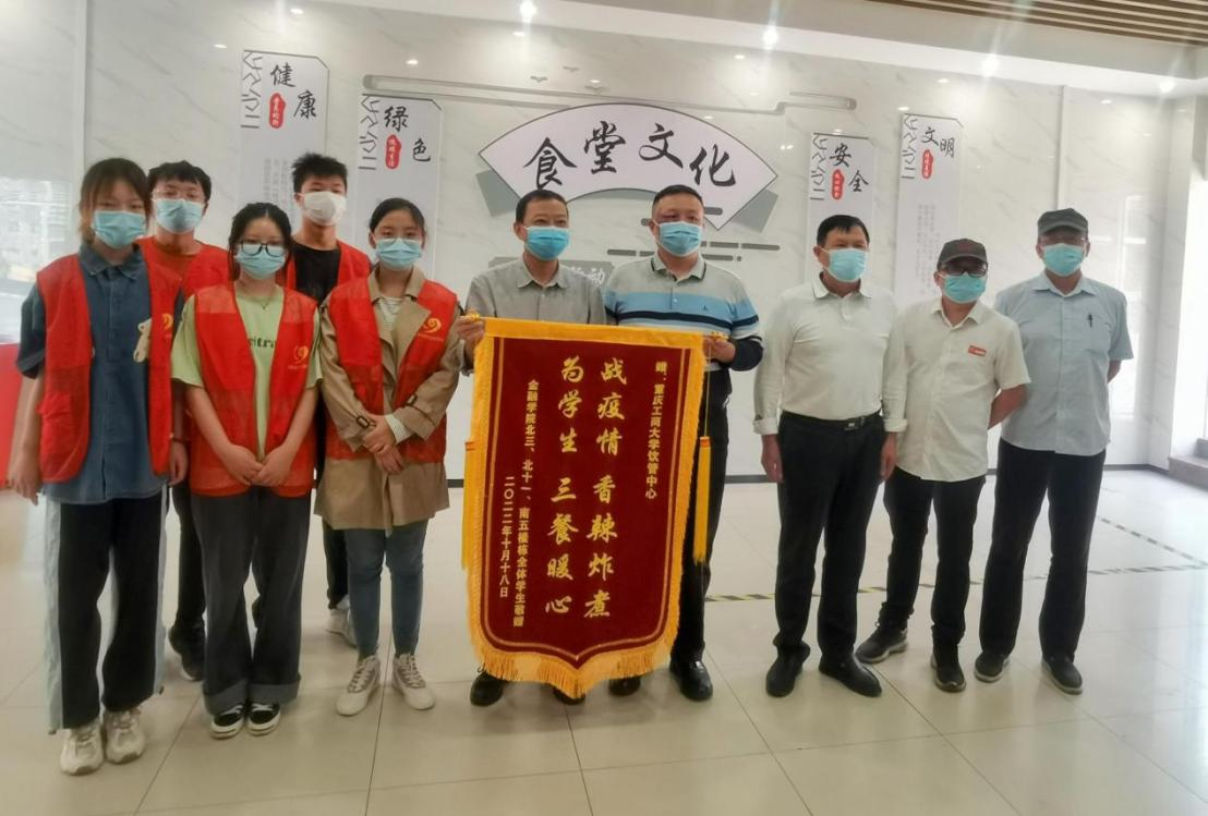 为感谢太阳成集团饮管中心的全体食堂工作人员在疫情防控期间的辛勤付出,10月21日,太阳成集团tyc北三、北十一、南五楼管会代表三个楼栋的全体同学向饮管中心赠送锦旗,向全体食堂工作人员表达真挚的感谢,并致以崇高的敬意!