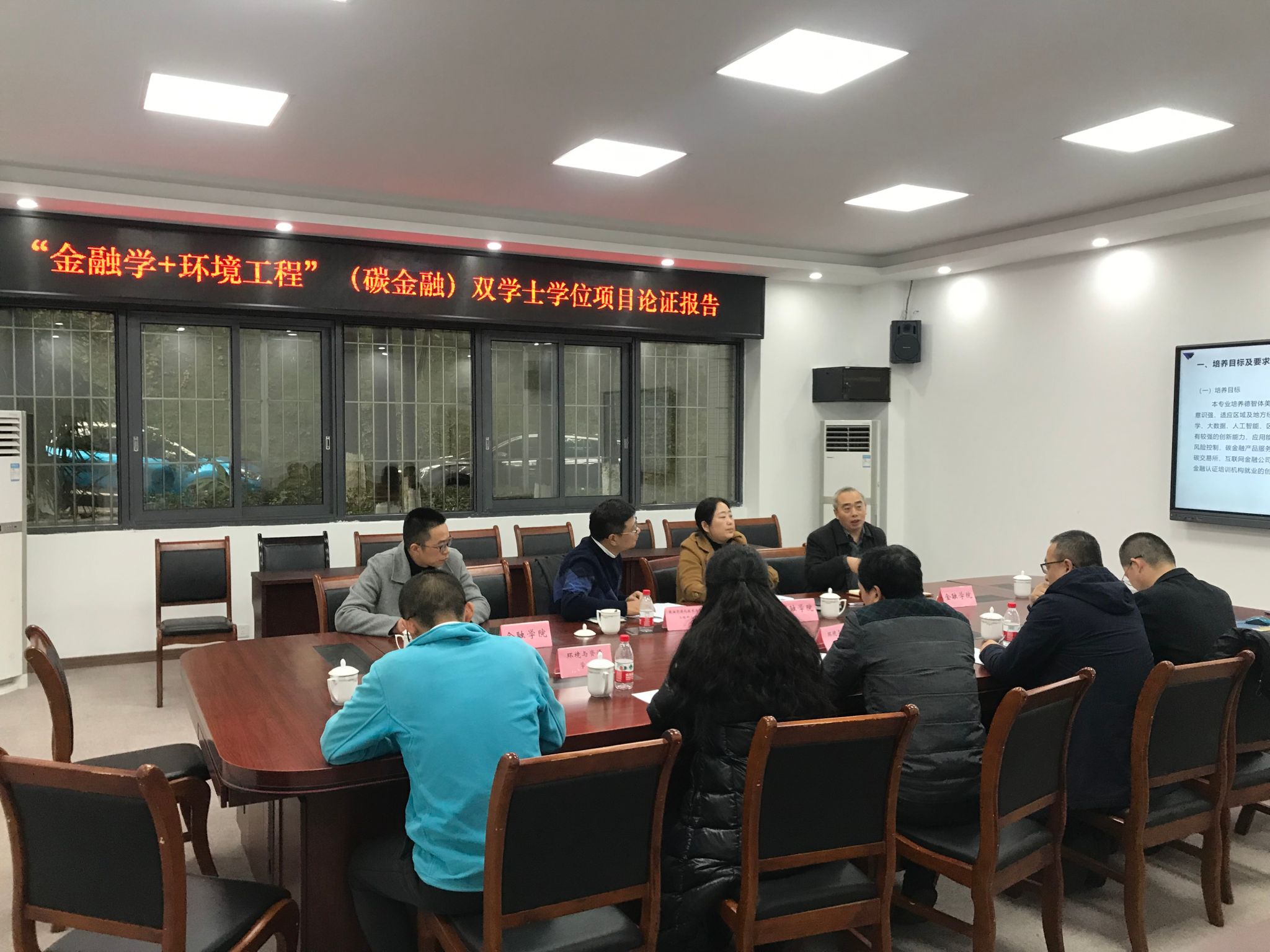 教务处处长骆东奇建议在课程设置上融合金融学基础课程和环境工程基础课程,围绕碳金融和环境经济,推进产教融合、校企合作,提升课程质量。
