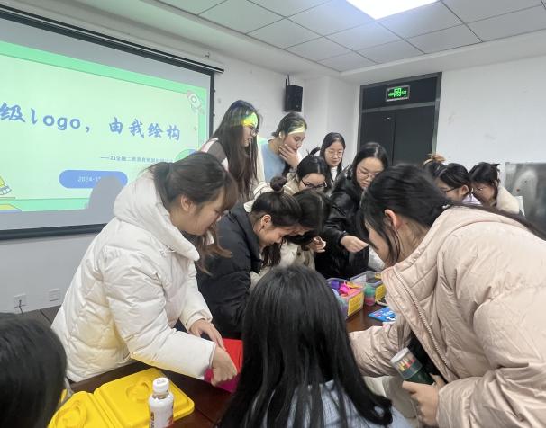 同学们纷纷自由组队,每个团队由6-7人组成,大家根据自己的兴趣和创意,充分利用所提供的物资和材料,开始了logo的创作。