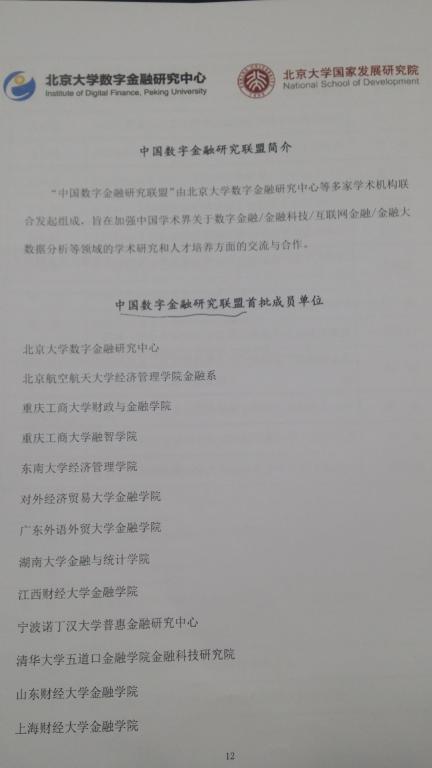 “中国数字金融研究联盟”由北京大学数字金融研究中心等多家学术机构联合发起组成,旨在加强中国学术界关于数字金融/金融科技/互联网金融/金融大数据分析等领域的学术研究和人才培养方面的交流和合作。公司成为中国数字金融研究联盟首批成员单位,靳景玉教授代表太阳成集团财政太阳成集团tyc发言。主要介绍公司从1998年就开始研究金融电算化,随后研究网络金融。在金融学本科专业下设的互联网金融方向。拥有智能金融研究中心,在数字金融、智能金融有一定研究优势,并介绍了下一阶段研究的设想。