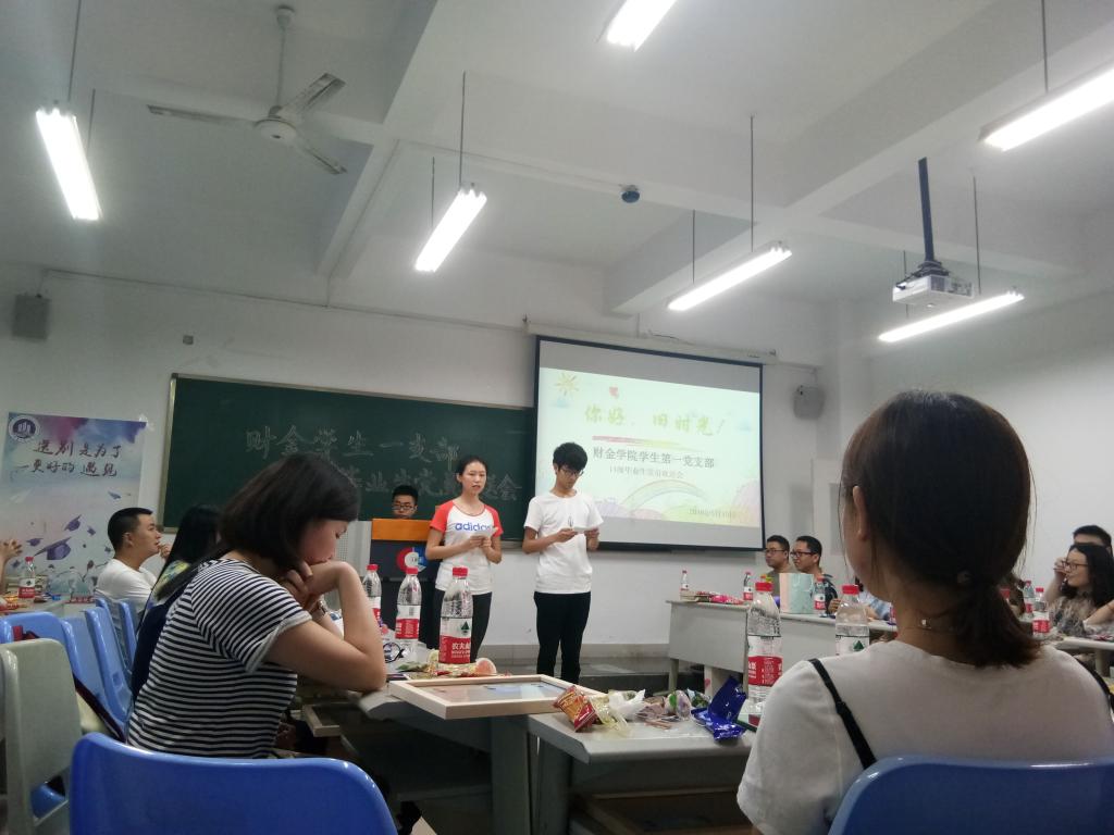 太阳成集团财政太阳成集团tyc员工第一党支部在2018年5月15日晚上20:30-22:00于田家炳308教室举办了以“你好 旧时光”为主题的毕业生欢送晚会。与会人员是财金员工第一党支部所有14级、15级、16级的支部同志以及一支部书记文理同志和辅导员张燕老师。