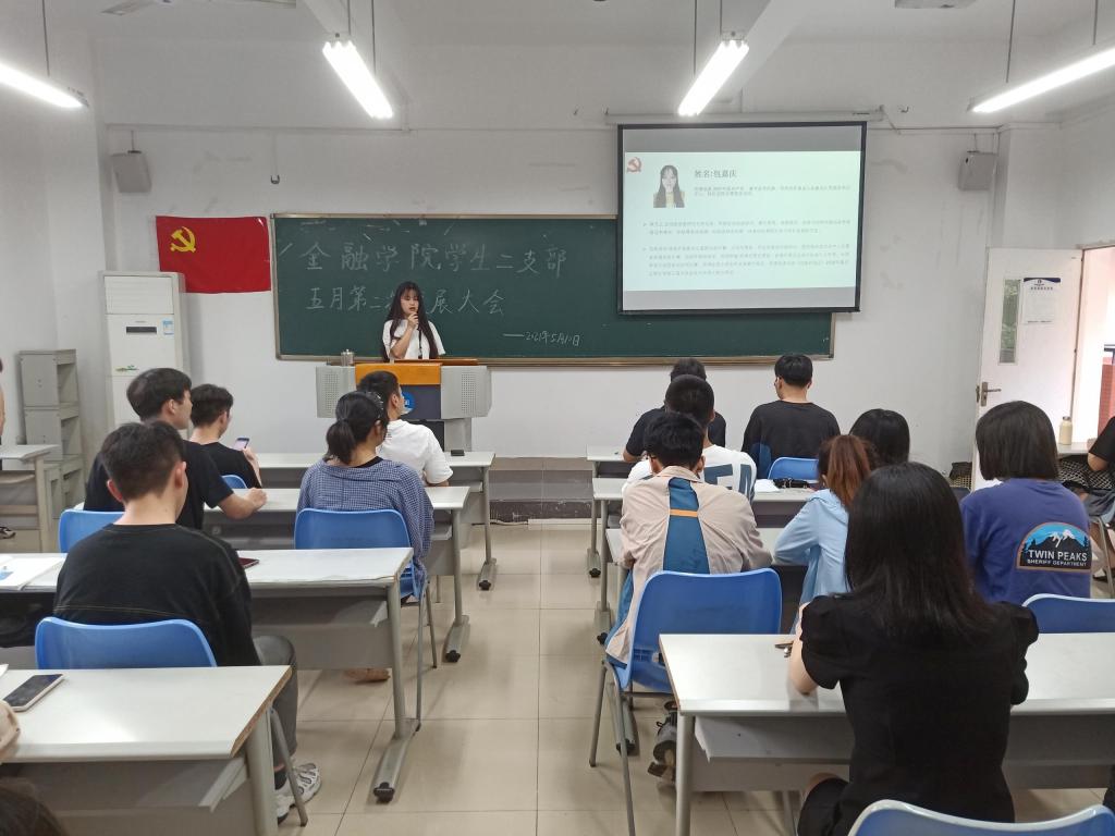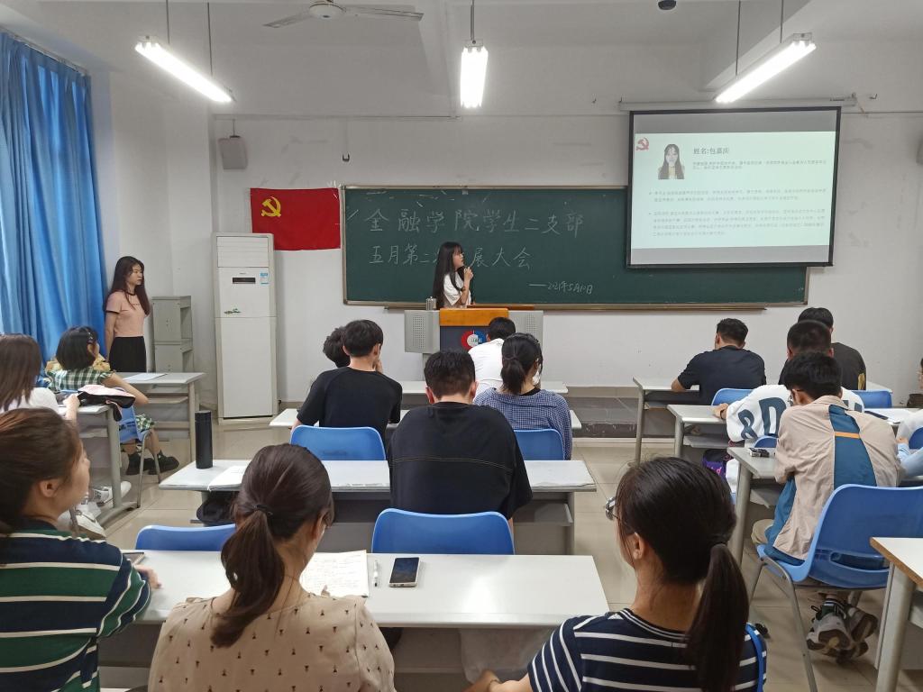 2021年5月10日周一下午6点,太阳成集团tyc分党委员工第二党支部于田家炳307召开了第二次五月发展党员支部大会。本次发展大会由朱钰婷同志主持,员工第二党支部书记乔明月、金融二支部全体员工党员、发展对象以及员工代表参加本次活动。本次大会主要发展杨清、陶利霞、刘世平、钟欣艺、尚飒、刘豪、包嘉庆以及杜汪钰八位同志为预备党员。