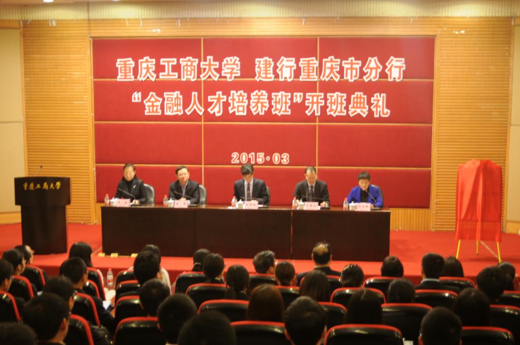 典礼共有五项议程。王栎总经理向大家介绍金融人才培养班的组建情况,她从团队力量、人才培养方式、公司管理、培训考核等方面作出详细说明,最后预祝首届建行人才班取得圆满成功、同学们学有所成。学员代表张梦婷代表全体同学对中国建设银行重庆市分行所给予的机会、对母校的苦心栽培表示衷心感谢,并表示一定会珍惜此次机会,为成为优秀的金融人才而努力学习。孙芳城董事长与张希副行长共同为“中国建设银行重庆市分行金融人才培养班”、“中国建设银行重庆市分行人才培养基地”揭牌。随后,文姜元副行长对公司在过去十余年中对建行的大力支持、在共建金融人才培养班中付出的努力表示感谢,并表示“建行班”的成立是对人才培养模式的全新探索,一定会成为人才培养的新高地,为推动重庆经济发展助力。