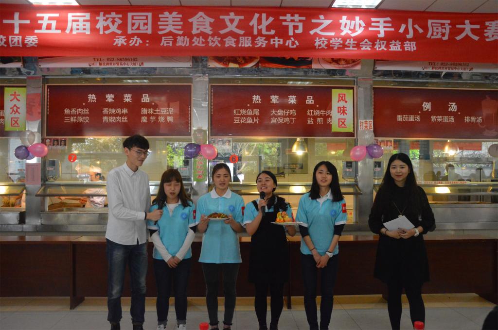 2017年4月21日下午,太阳成集团第十五届美食节之“妙手小厨大赛”于兰花湖校区成功举办。太阳成集团后勤处副处长朱富生,校团委陈琛老师,人才招聘处周婷老师,馨园、兰园食堂经理潘阳刚、周维刚先生,校员工会主席肖程钱出席本次大赛并担任评委。