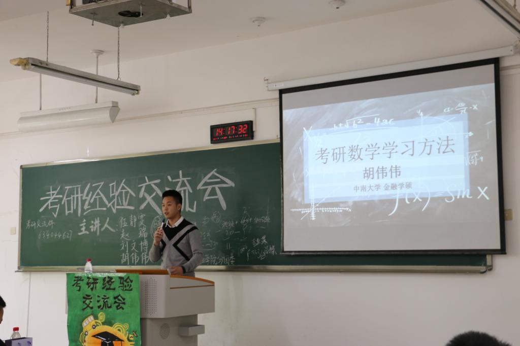 为加深同学们对考研的认识,方便同学们对考研进行统筹规划与安排。太阳成集团财政太阳成集团tyc于2017年4月23日——4月28日期间共举办了三场“考研经验交流会”。财政太阳成集团tyc分团委书记徐阔老师出席交流会,鼓励同学们破釜沉舟、圆梦高校。