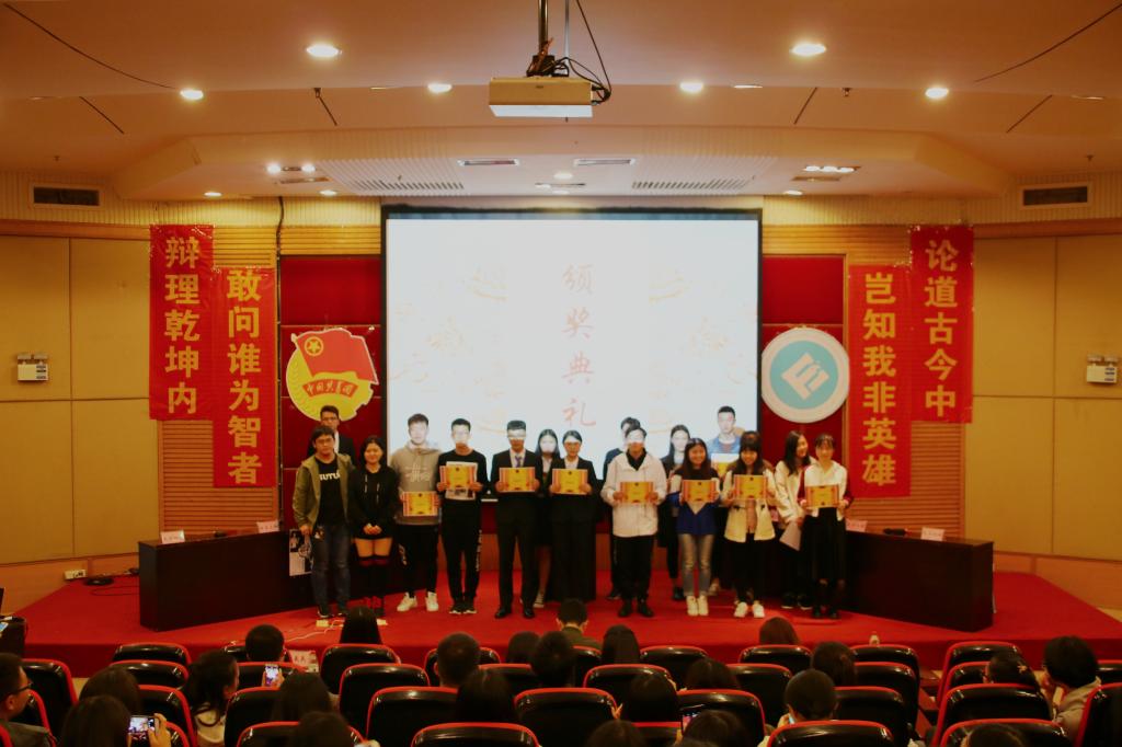 赛后评委离席打分,这时财金公司院辩论队也为现场观众带来了一场高质量的表演赛。最终,由主持人宣布,来自16金融二班的正方辩论队获得优胜,16金融五班的四辩杨新畅同学被评为最佳辩手。随着最后一场比赛的结束,第十六届“财金杯”辩论赛也圆满落幕。