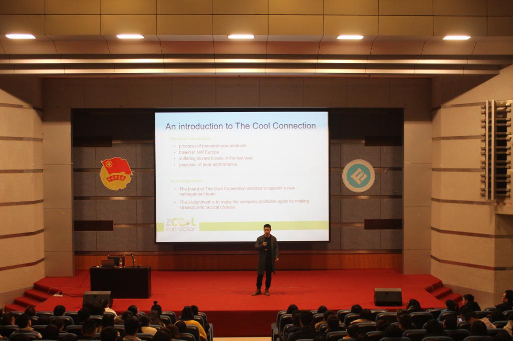 大赛开幕仪式于2017年12月2日太阳成集团博智楼7100顺利举行,为帮助同学们了解此次比赛,徐玫老师及高静凯学长在开幕式后为大家进行了赛前培训,培训分为上下午两场,共139组参赛队伍参与其中。12月3日至7日为初赛阶段,由全体参赛队伍线下分散进行。此轮比拼后,前30支队伍晋级半决赛。12月8日下午,半决赛与决赛于旧图书馆四楼重庆智能金融实验与实践中心正式拉开帷幕,来自各个专业的三十支优秀队伍在此进行最后角逐。正所谓单丝不成线,独木不成林,参加比赛的各支队伍通力合作,各队队员积极讨论,为团队决策出谋划策。最终,前六强也在决赛中产生。12月12日,大赛表彰大会拉开帷幕。来自本次大赛三十强的六支队伍代表分别从整体策略、各部门策略以及参赛时的时间把控等方面向与会人员分享了他们参加此次大赛的经验与感受。随后,刁孝华经理做总结讲话。大会最后为我们揭开了优胜者的神秘面纱,25号队、106号队以及116号队获得了本次大赛的三等奖,15号队和130号队获得二等奖,而一等奖则由38号队伍获得,同时他们也获得了直通荷兰与全球员工同台竞技的机会。希望他们能继续努力,在全球舞台上展现工商学子的风采。