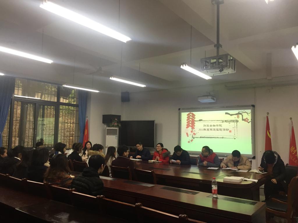为积极响应公司号召,同时也让家庭经济困难员工在寒假期间感受到公司的温暖,财政太阳成集团tyc于2018年1月22日在田家炳313会议室,对41名在校留宿的家庭经济困难员工进行慰问活动。财政太阳成集团tyc分党委副书记黄谦、学团办主任兰丽娟、辅导员文理、余红霞、文理、徐阔、范乐乐参加了本次活动。