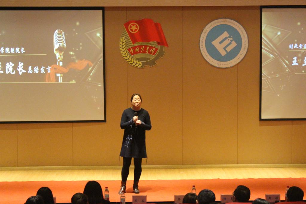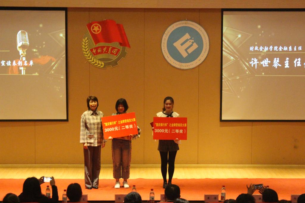 随后,获奖选手代表陈露、杜朝阳向与会人员分享了他们在营销过程中的经验和体会,让观众感受到他们一路的成长与磨砺。在抽奖环节后,王兰副经理作出总结致辞,她用“Surprise、Amazing、Gorgeous”三个英文单词概括了此次总结暨表彰大会,赞许了选手们在赛事中的坚持与付出,肯定了财金公司多元化校园生活建设的成果,表达了对莘莘学子未来发展的祝福并再次感谢重庆银行提供的宝贵的实践平台。