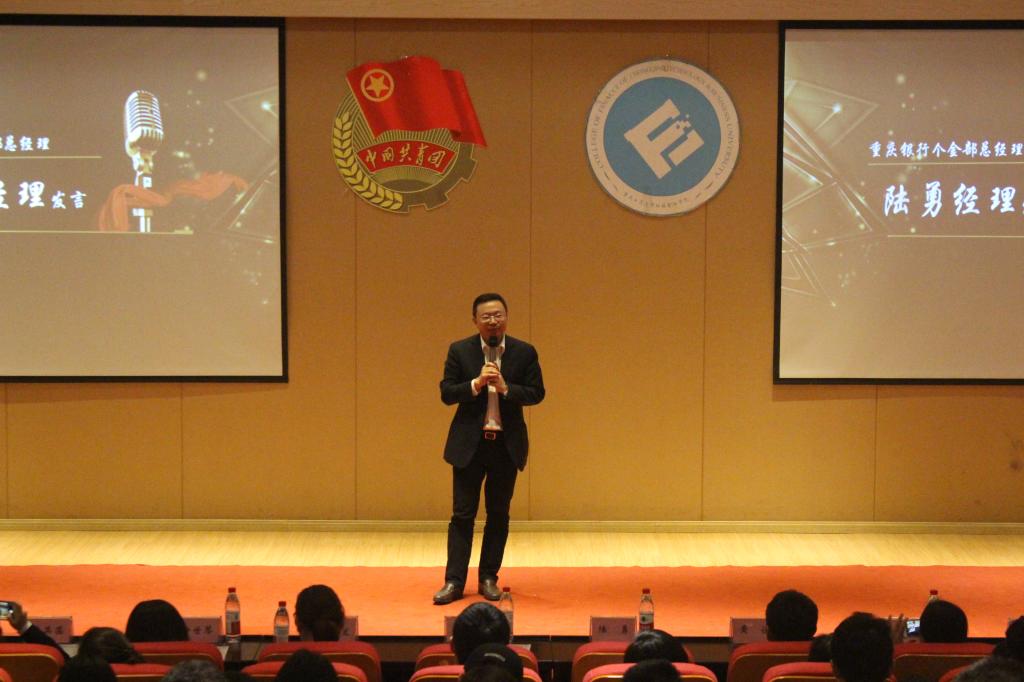 2018年4月25日晚,财政太阳成集团tyc第二届“重庆银行杯”金牌营销员大赛总结暨表彰大会在田家炳209报告厅隆重举行。重庆银行个金部总经理陆勇,重庆银行个金部周璇、左其菡;财政金融公司党委书记杨萍、党委副书记黄谦、副经理王兰,金融系主任许世琴、讲师杨佳妮以及分团委书记徐阔作为嘉宾莅临了此次大会,与入围决赛的47位选手和现场观众一起回顾历时三个月的漫漫营销路。