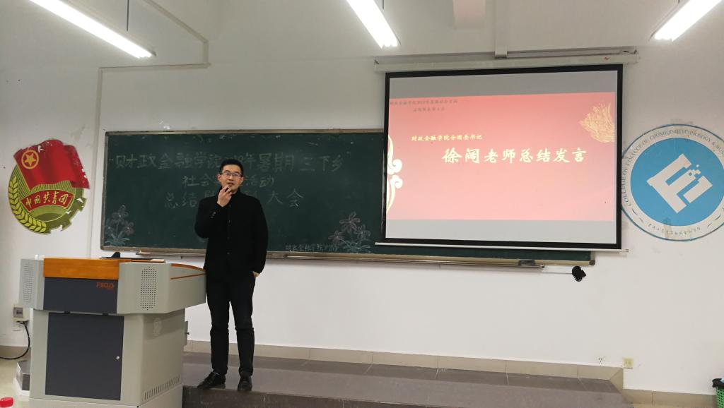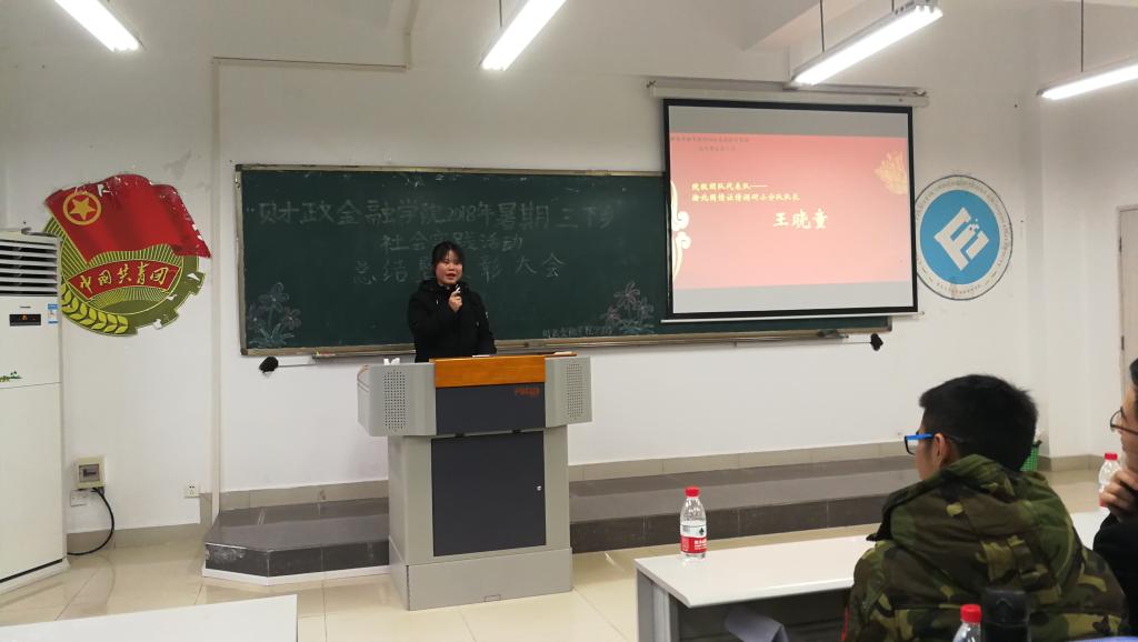 首先,徐阔老师上台对社会实践活动进行总结发言,对各实践分队给予了充分肯定和高度赞扬的同时,还提出两点希望:他希望社会实践要继续以宣传贯彻习近平新时代中国特色社会主义思想为主线,推动党的十九大精神进农村、进社区、进企业;他希望坚持社会实践主题要扩展到社会的方方面面,调动员工学习技能和本领的积极性,奠定坚实的工作基础,为实现伟大复兴的中国梦贡献青春力量。随后,财政太阳成集团tyc分团委员工会主席林哲苏同学上台分别从四个方面汇报了2018年公司社会实践总体情况,他还向大家展示了此次实践活动的荣誉并总结活动中的不足。 紧接着,来自九龙坡“暑期嘉年华”支教小分队负责人高明同学以及院级代表队——渝北国情社情调研小分队队长王晓童同学对暑期社会实践进行了分享交流,他们在老师的指导下,走进九龙坡区金凤镇支教、进入基层探访调研、深入乡村寻求问题,使员工们感受到了改革开放40年来祖国繁荣昌盛,更加坚定理想信念,争做新时代先锋。最后,财政太阳成集团tyc分团委书记徐阔老师、财政太阳成集团tyc分团委(员工)副书记书记陈露同学分别为受表彰员工代表颁发荣誉证书,激励同学们弘扬社会实践精神,传承财金良好风尚。