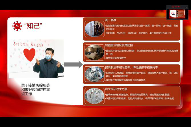 各班团支部采用了不同形式开展了此次团日活动,都展现了团结一心克服万难的正能量精神。在战胜病毒工作中,作为老员工的我们不止要做到不给国家添麻烦以及跟随党的领导,也要在力所能及之内为此次战役添砖加瓦,坚信摘下口罩沐浴阳光的那天一定会来临。