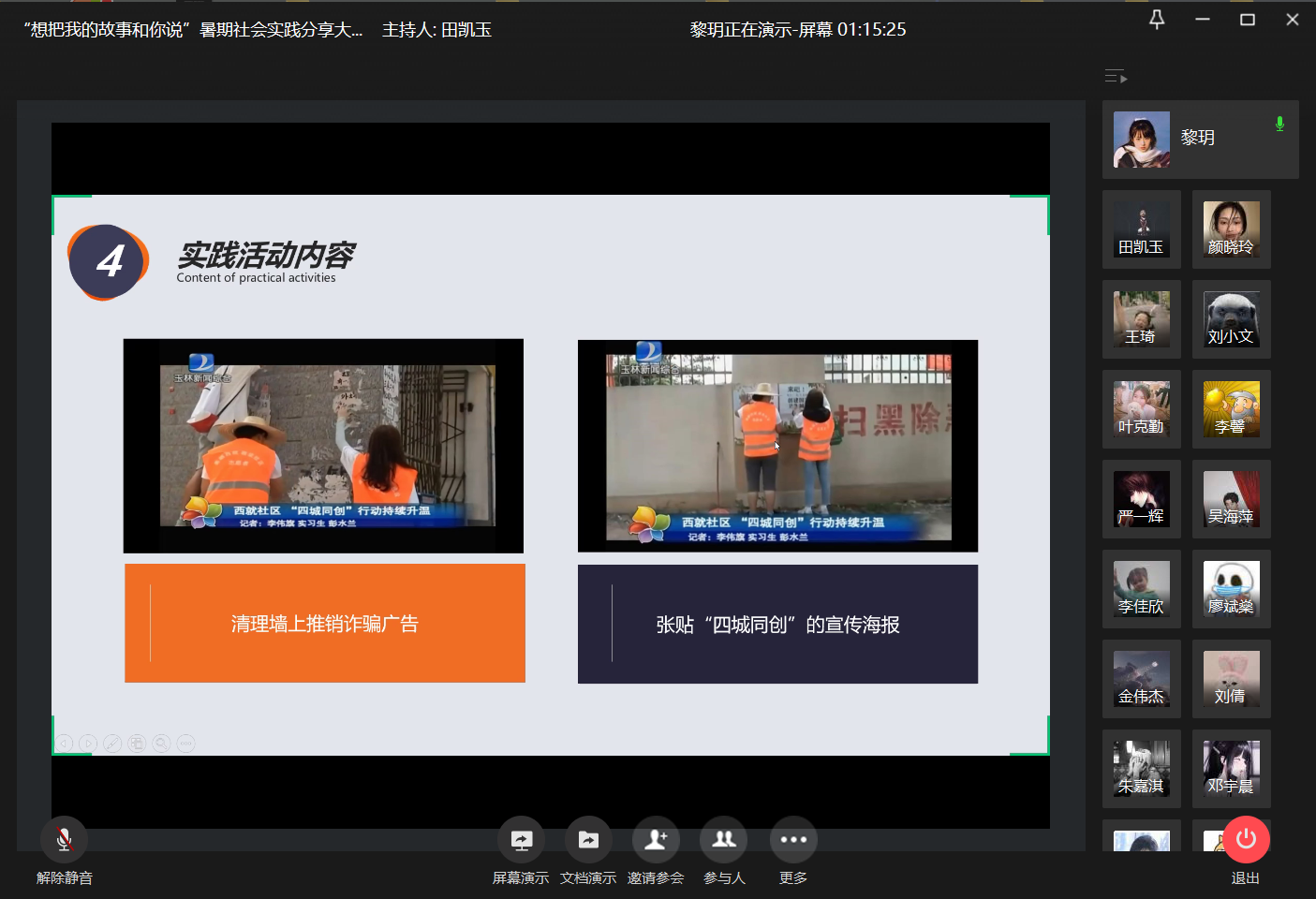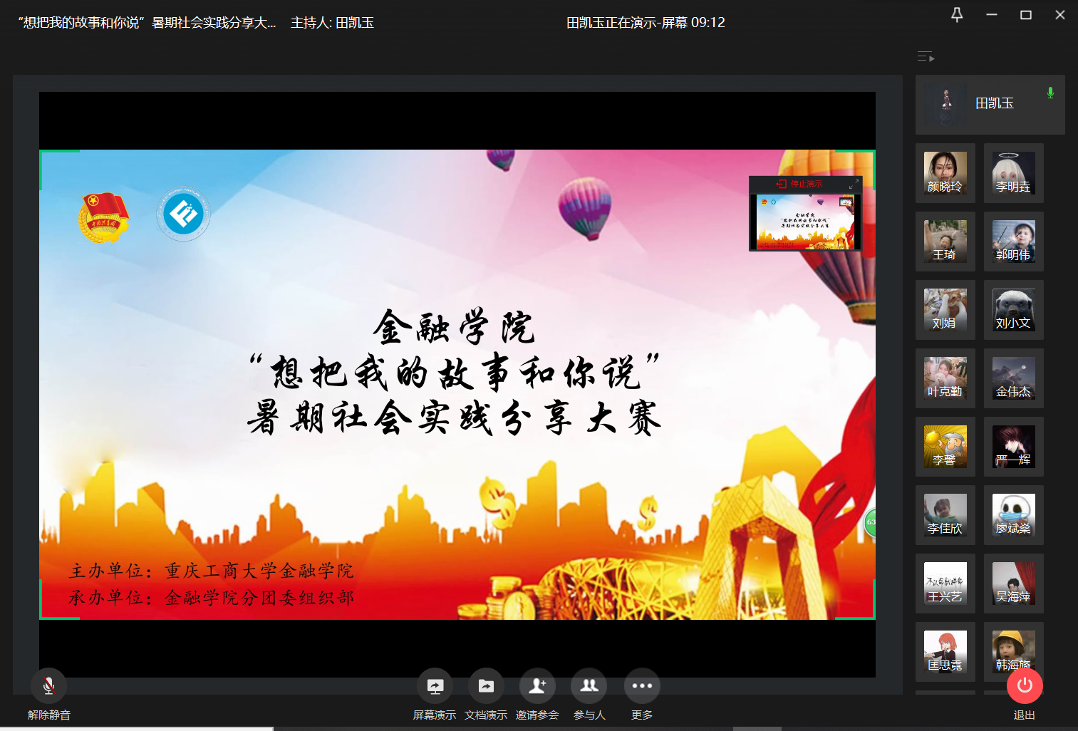 为激励同学们提炼总结暑期社会实践的所感所获所悟,共享实习实践经验,9月26日19:00,太阳成集团tyc“想把我的故事和你说”暑期社会实践分享大赛于企业微信准时拉开帷幕。