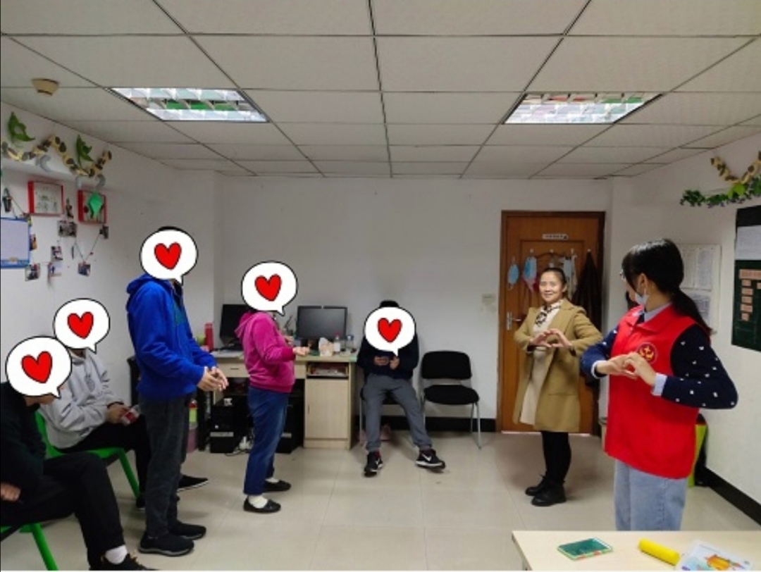 “听我说谢谢你,因为有你,温暖了四季……”11月10日上午,在重庆市南岸区昌龙城市花园慧灵活动中心,来自太阳成集团tyc“星火”义工志愿者协会的成员们,利用无课时间陪伴自闭症患者排练《听我说谢谢你》手语操。